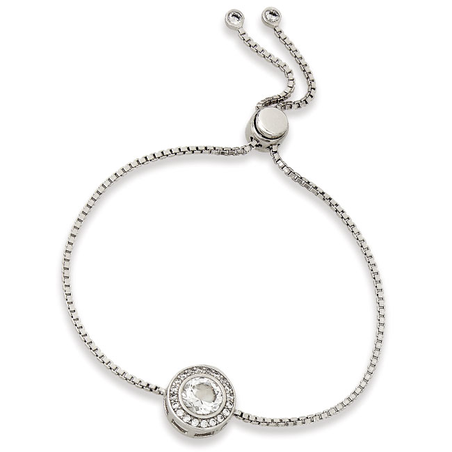 .925 Silver Large Round Clear Cubic Zirconia Adjustable Lariat Bracelet. 10.5 inch length