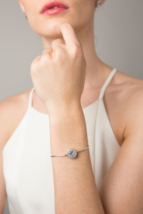 Silver Large Round Clear Cubic Zirconia Bracelet