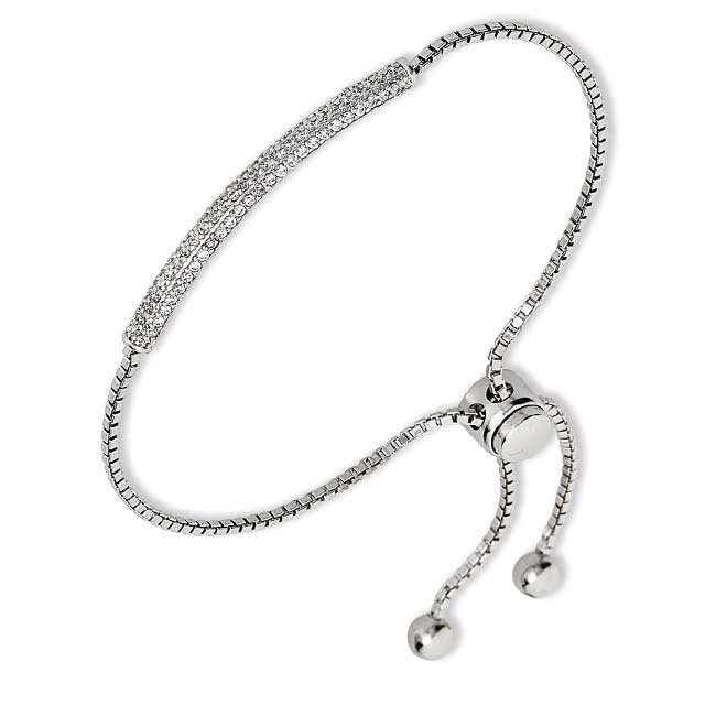 .925 Silver Rhodium with Clear CZ Pave Bar adjustable Lariat bracelet