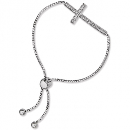 .925 Silver Rhodium with Clear CZ Sideways Cross adjustable Lariat bracelet