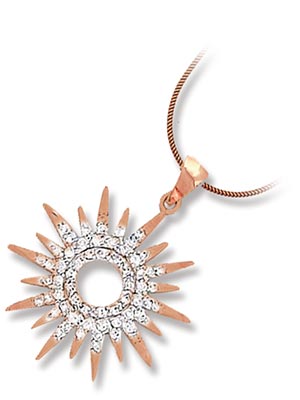Rose Gold finish Small Sun Dial with Clear CZ & Rose Gold Chain