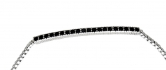 Silver Rhodium with Black Cubic Zirconia Bar Adjustable Lariat Bracelet. 10.5 inch length