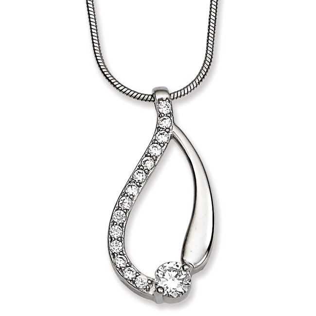 .925 Silver Twisted Textured Open Raindrop with Triple A Quality Clear CZ's