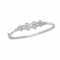 Silver Open Loop with CZs over a Plain Lozenge Shape Necklace and Earrings Set