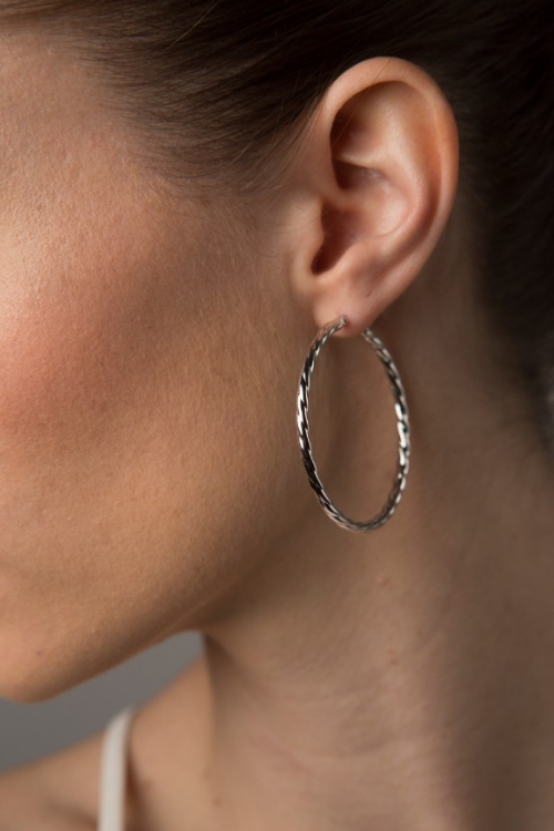 .925 Silver Twisted Hoop Earrings (1 3/4")