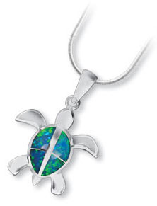 Sea Turtle with Lab Opal Pendant and Earring Set