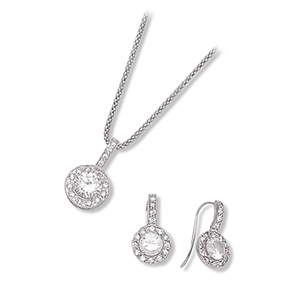 Vintage Pave Fish Hook with Clear CZ Earrings and Pendant Set