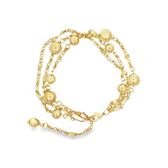 Gold-Filled Bracelet Triple strand mini flat G link design (1st strand plain, 2nd strand with 6mm Bead Ball spaced out and 3rd strand with 9mm Bead Ball spaced out) 7"+1" extender 9mm Bead Ball Dangle