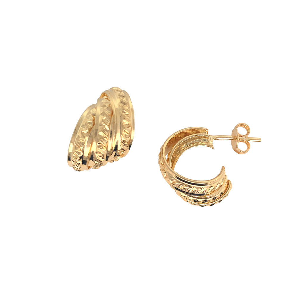 Gold-Filled Earrings Triple Gathered Layer with Each Center XXX Design 15mm H x 18mm W