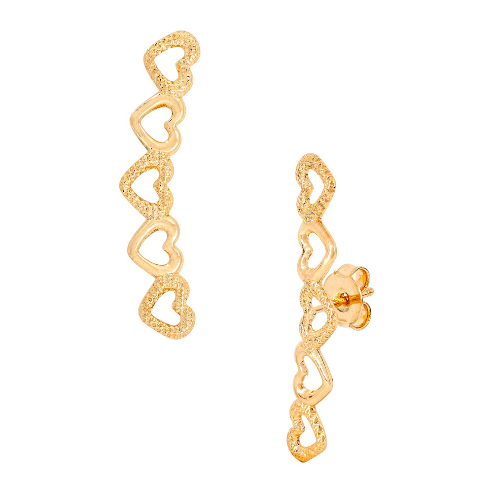 Gold-Filled mid way post earrings ear climbing 5 hearts shiny and textured 30mm H x 5.4mm W