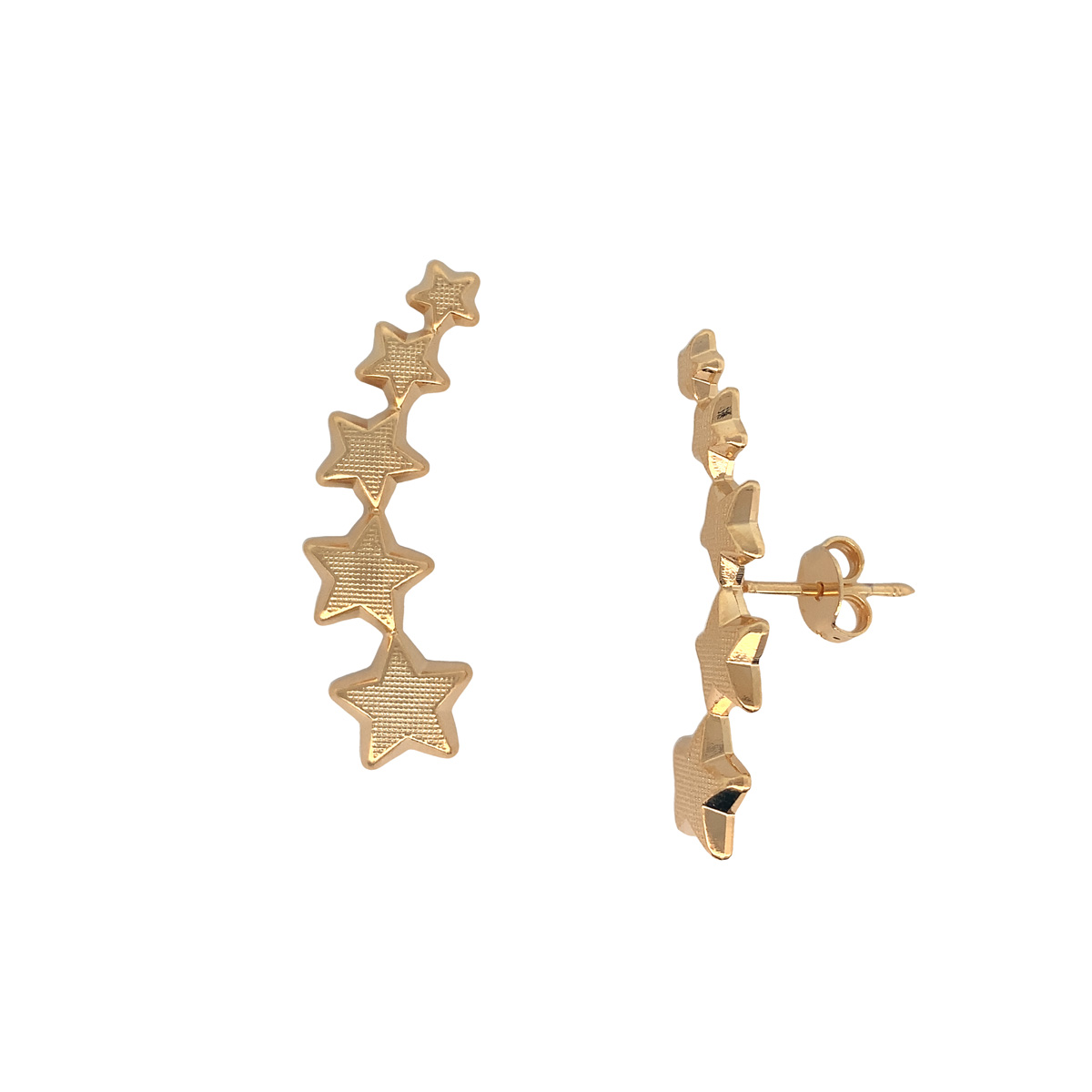 Gold-Filled mid way post earrings ear climbing 5 stars small to large 30mm H x 8mm W
