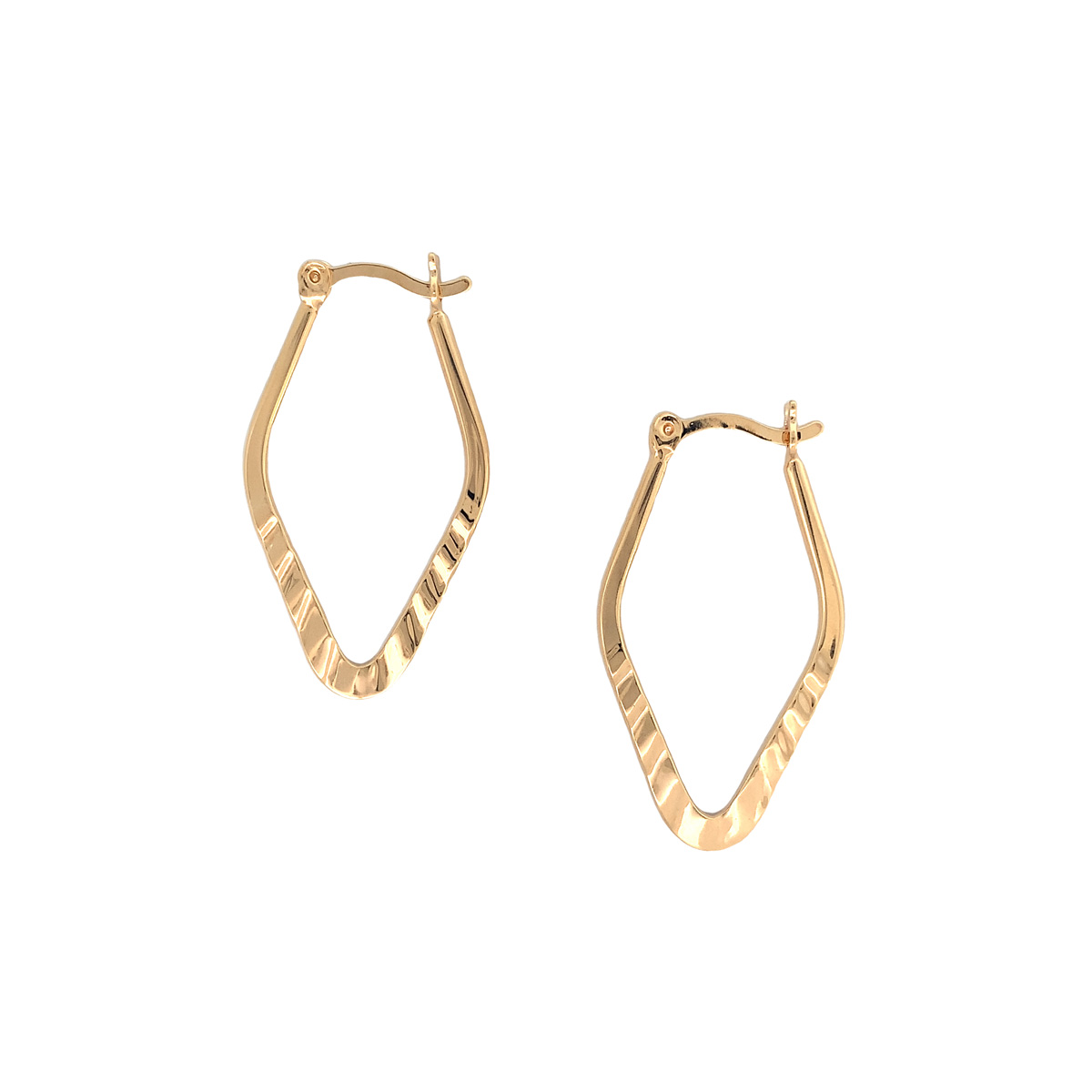 Gold-Filled Pointed Drop Oval Wavy Hoop Earrings 31mm H x 17mm W