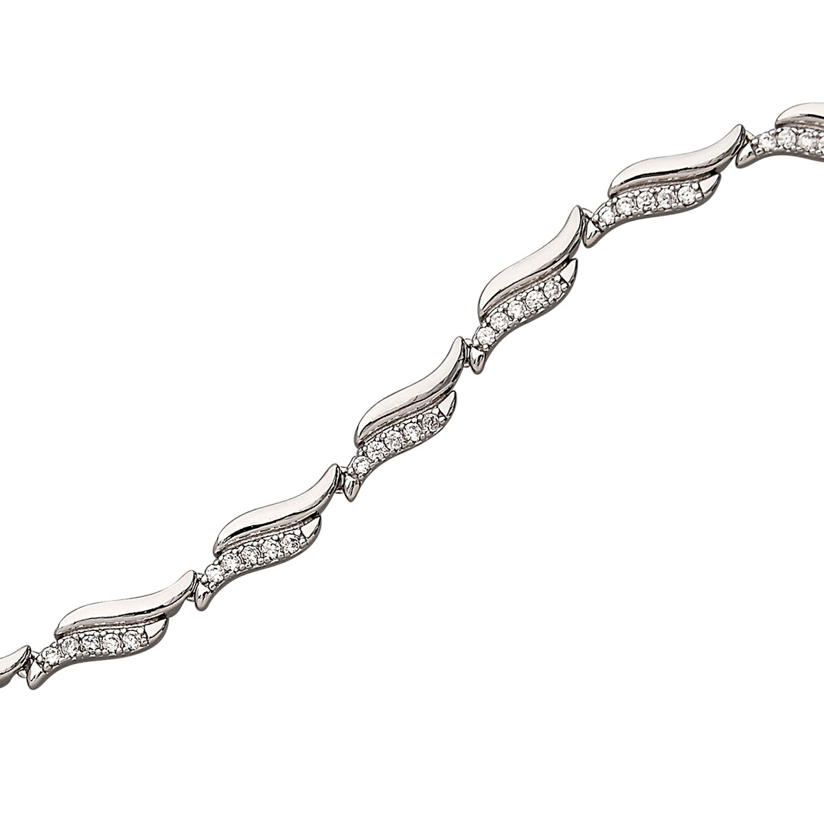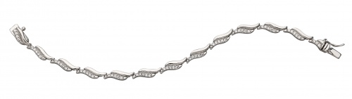 .925 Silver Plain and Clear Cubic Zirconia Double Wave Design Bracelet