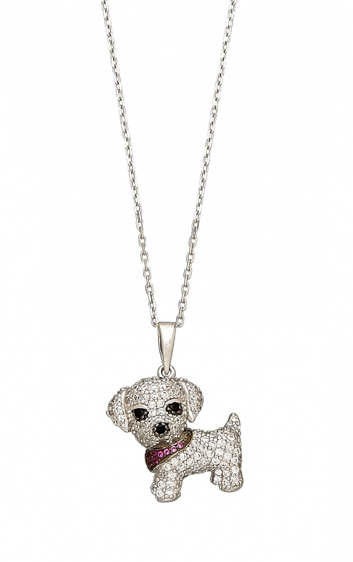 Silver Clear and Pink CZ's Pave Set Puppy with Bandana