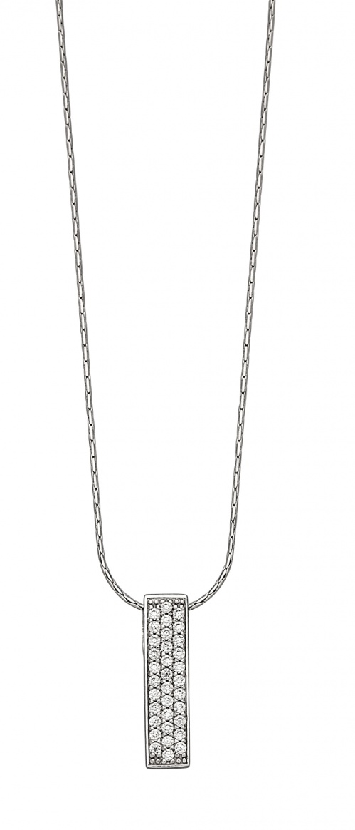 .925 Silver Clear Cubic Zirconia Pave Bar Pendant