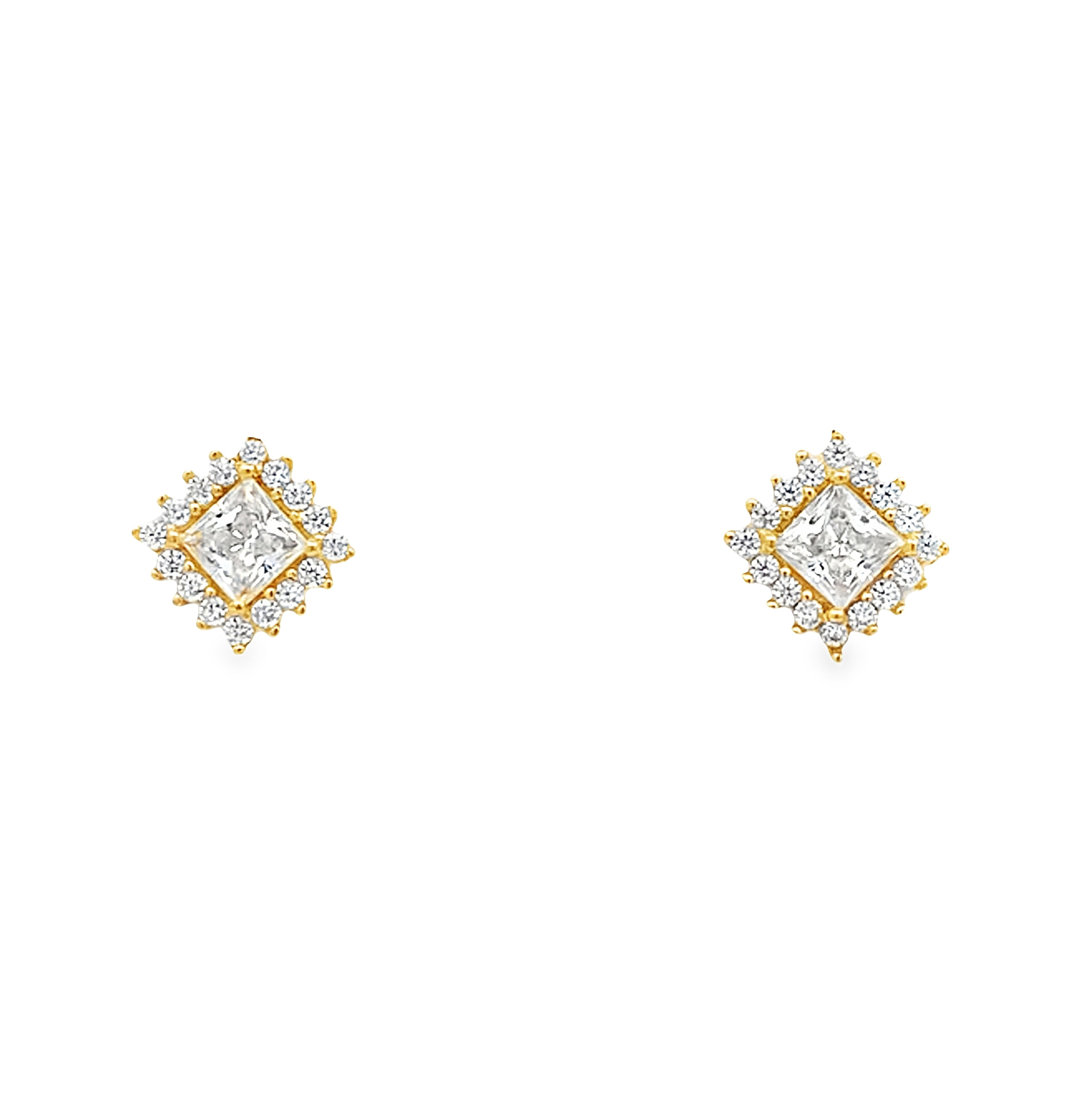 Silver Gold-Plated Moissanite Halo Square Post Earrings