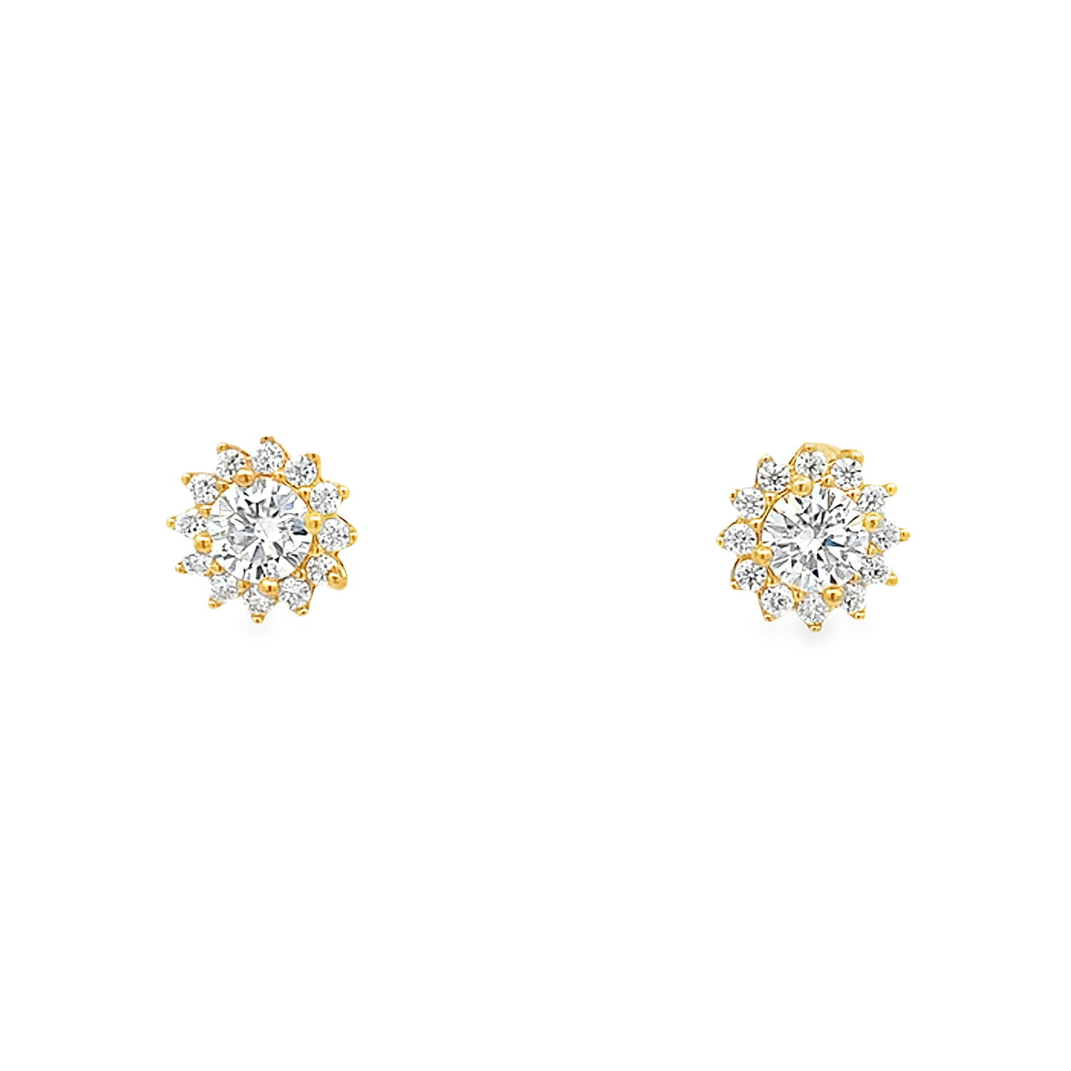 Silver Gold-Plated Moissanite Sunflower Design Post Earrings