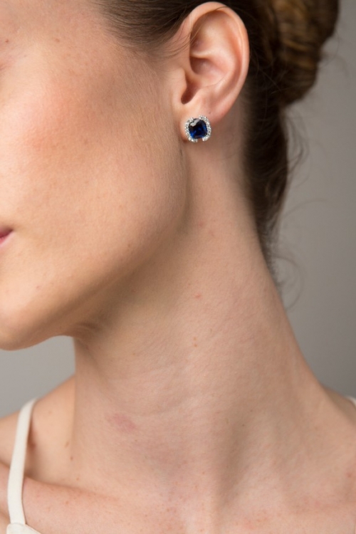 Cushion Cut Tanzanite Colored CZ with Clear CZ (3A Quality) Earring
