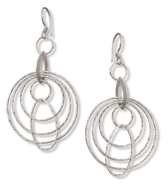 Diamond Cut Thin Circles with Oval Dangle Earring