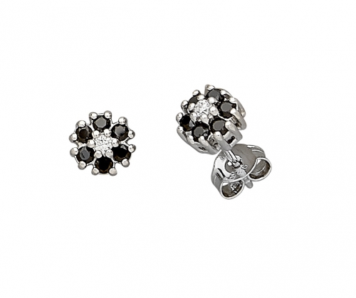 Mini Flower Design with Clear Centered CZ and Surrounding Black Colored CZ