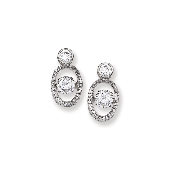 .925 Silver AAA Clear CZ's Open Oval with Dancing Center