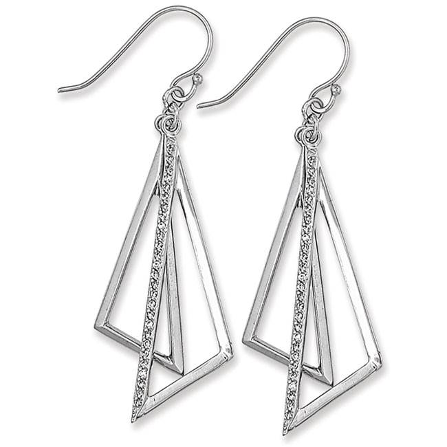 .925 Silver Dangling Elongated Double Triangle Design with Clear CZ's