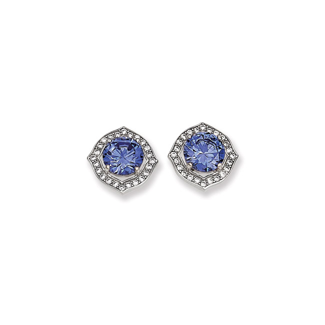 Silver Rosette Tanzanite Center CZ Earrings