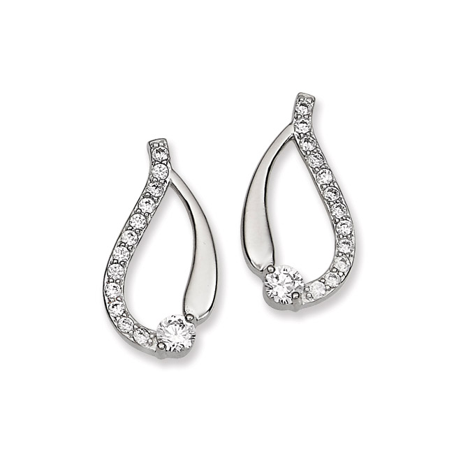 .925 Silver Twisted textured Open Raindrop with Triple A Quality Clear CZ's
