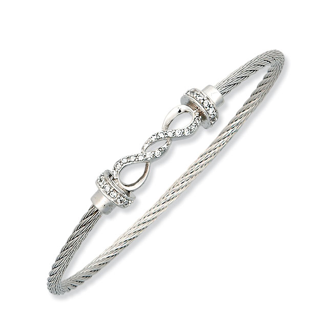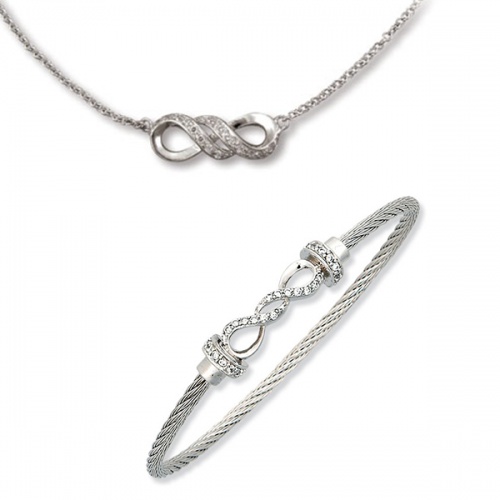 Infinity Design with Clear CZ Silver Neckalce and Bangle with Magnetic Clasp (stainless cable and .925)