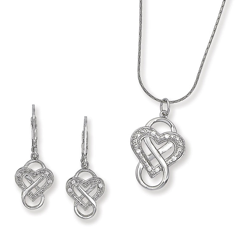 .925 Silver and CZ Interlocking Heart and Infinity Pendant and Earring Set