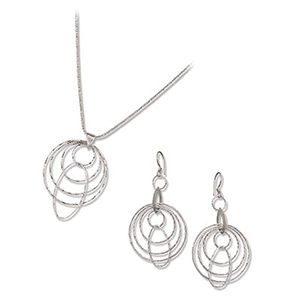 .925 Silver Diamond Cut Thin Circles Pendant & Earring Set with Oval Dangle