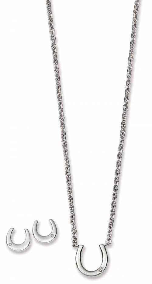 .925 Silver Horse Shoe with Diamond Necklace and Earring Set