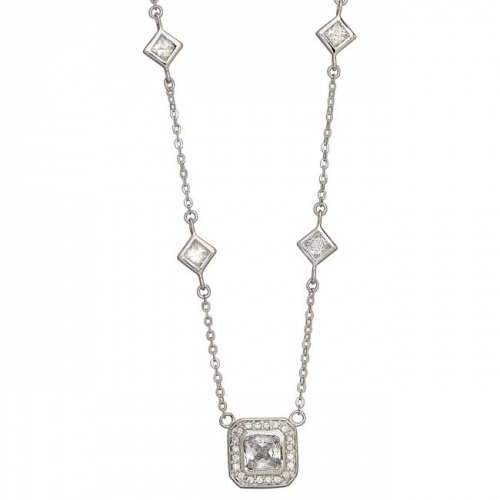 Princess Cut Bezel Set Large Clear CZ with Bezel Set CZ by the Yard 16"+2" inch ext. Necklace