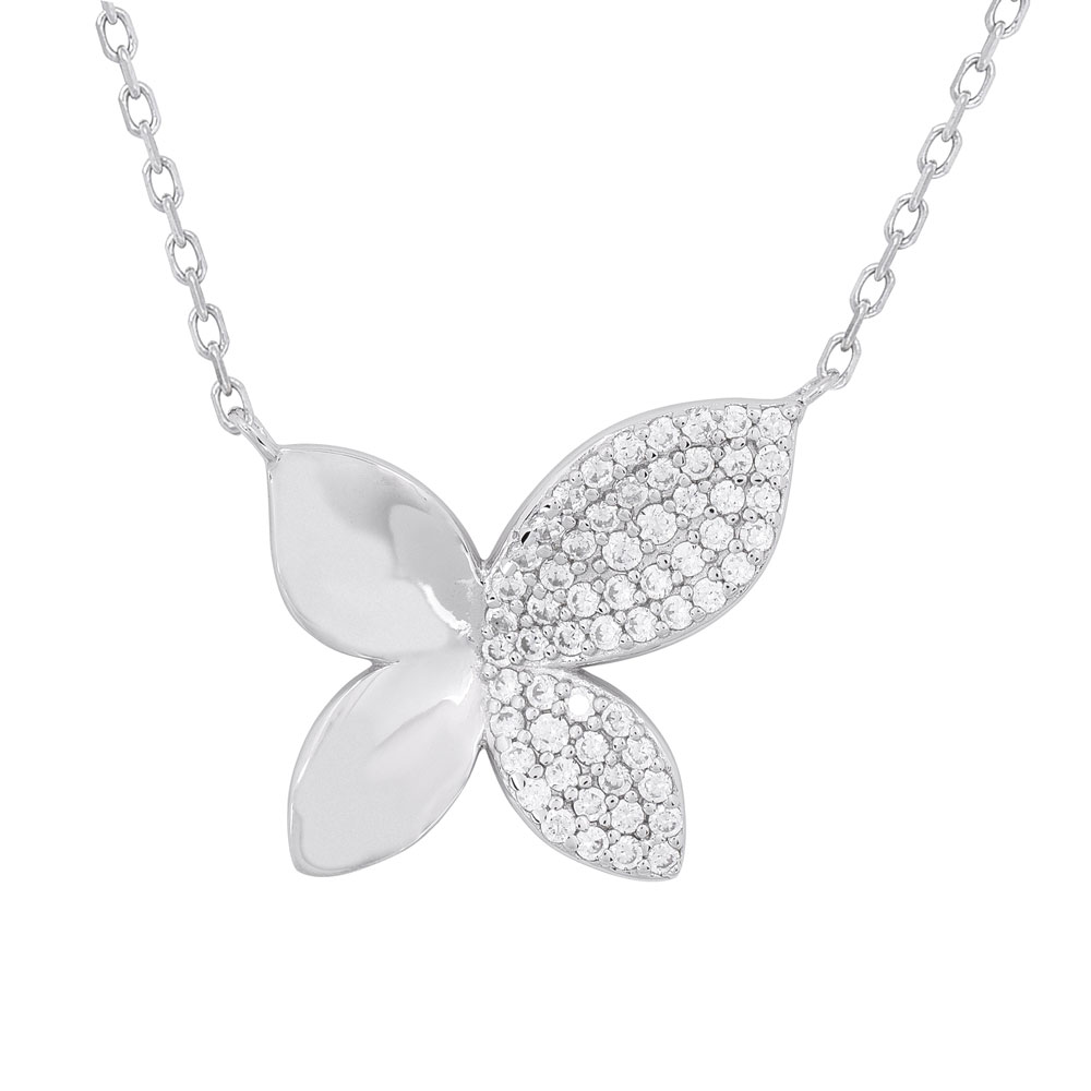 Silver Flower High Polish and White CZ Necklace and Earrings Set