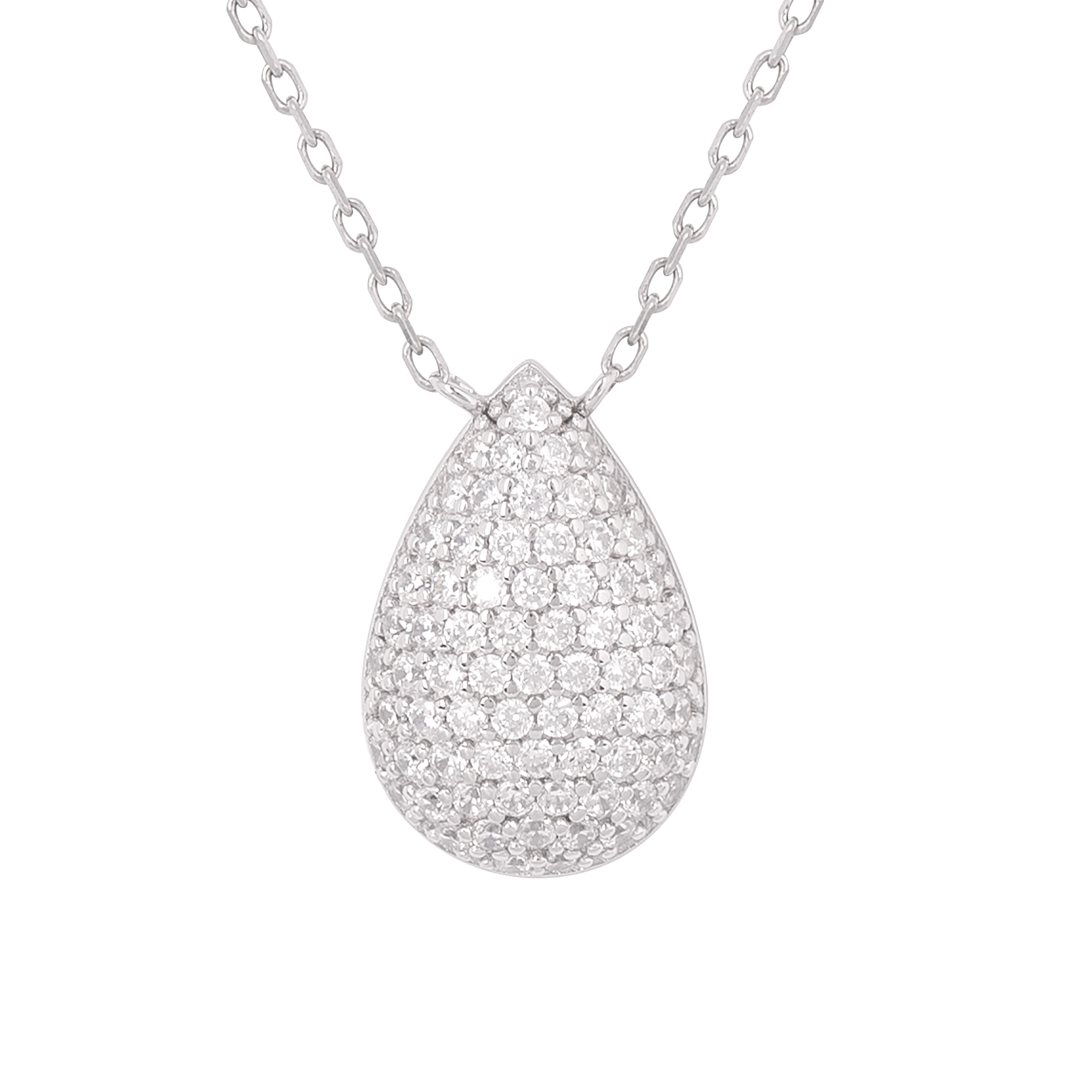 Silver Pave Pear Drop White CZ Necklace