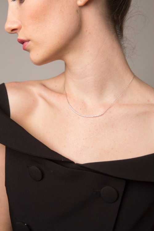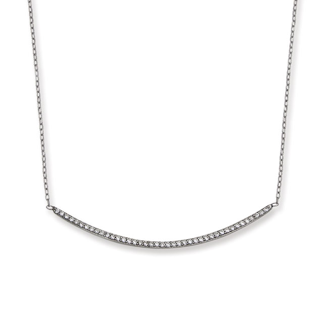 .925 Clear Cubic Zirconia Curved Bar Necklace. 16 inch length with a 2 inch extender