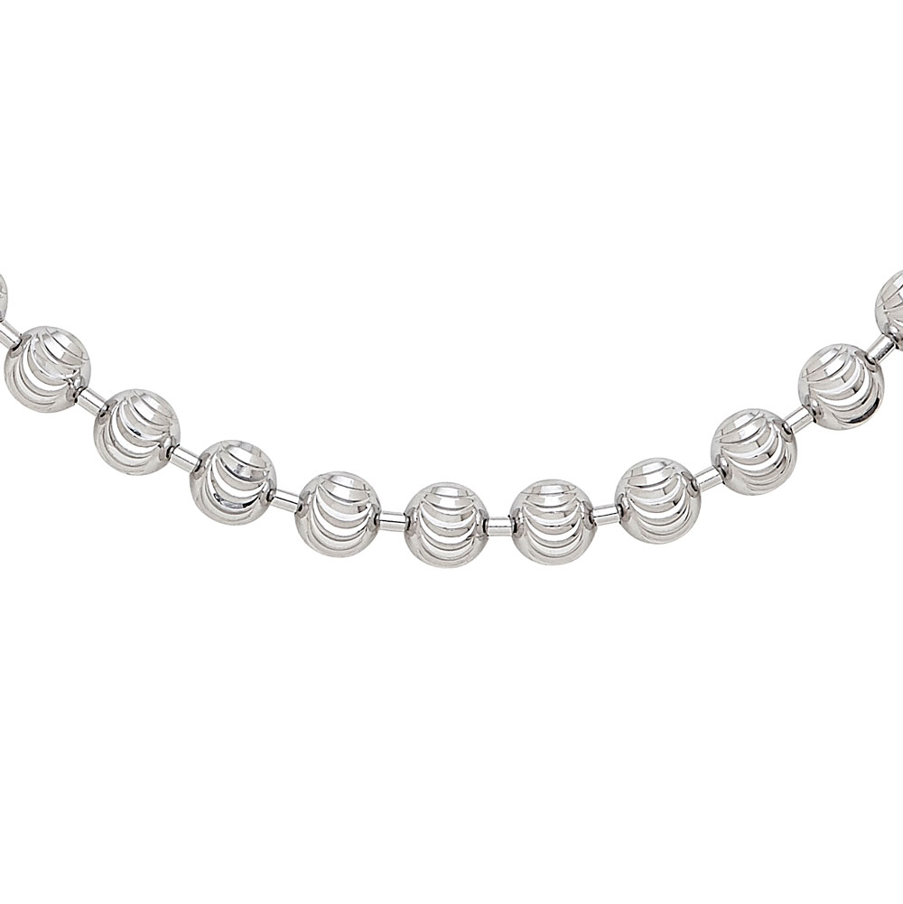 .925 Silver All Rhodium Diamond Cut Mini Round Bead Strand Necklace 18"
