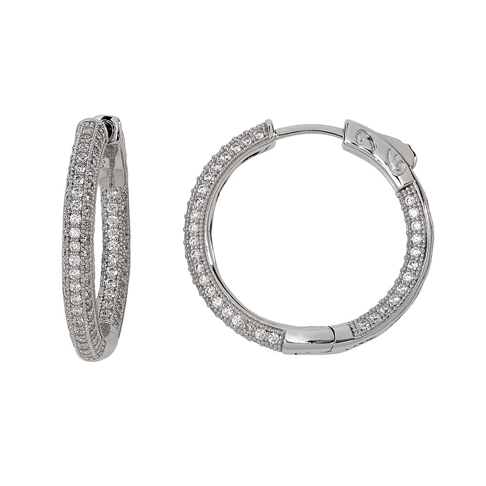 .925 silver AAA quality CZ inside/outside pave locking huggie