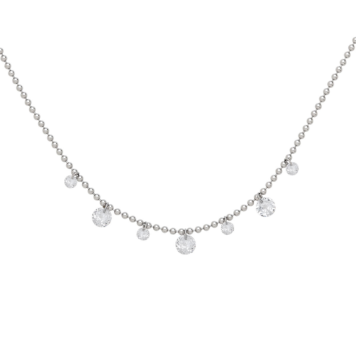 Silver Bead Necklace with 7 Sparkling Round CZs