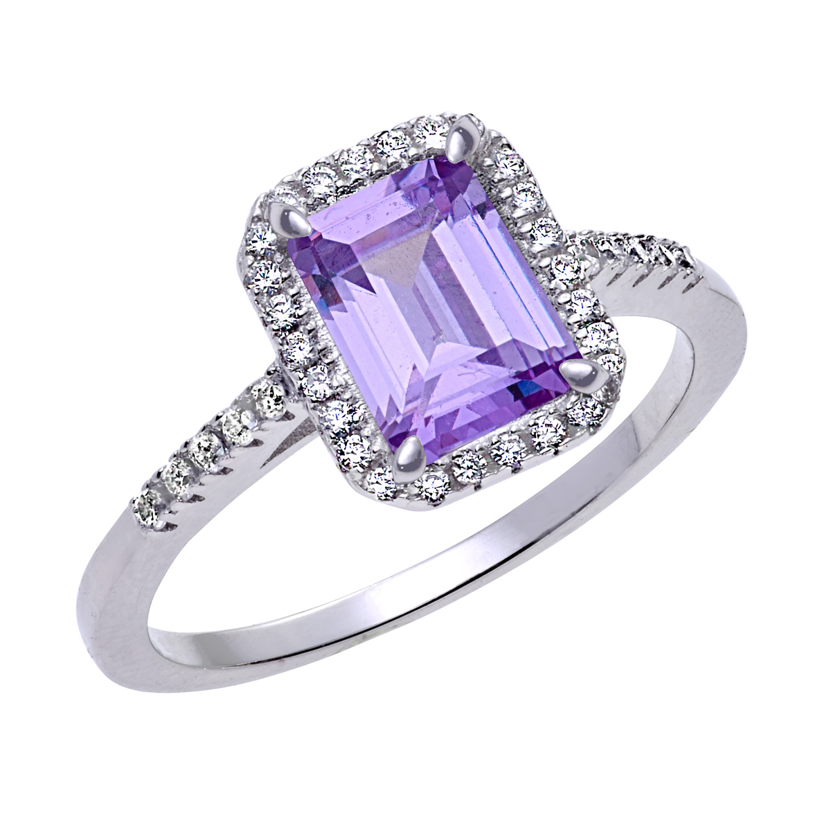 Silver Clear CZs Halo Design Ring with Large Lavender CZ (June)