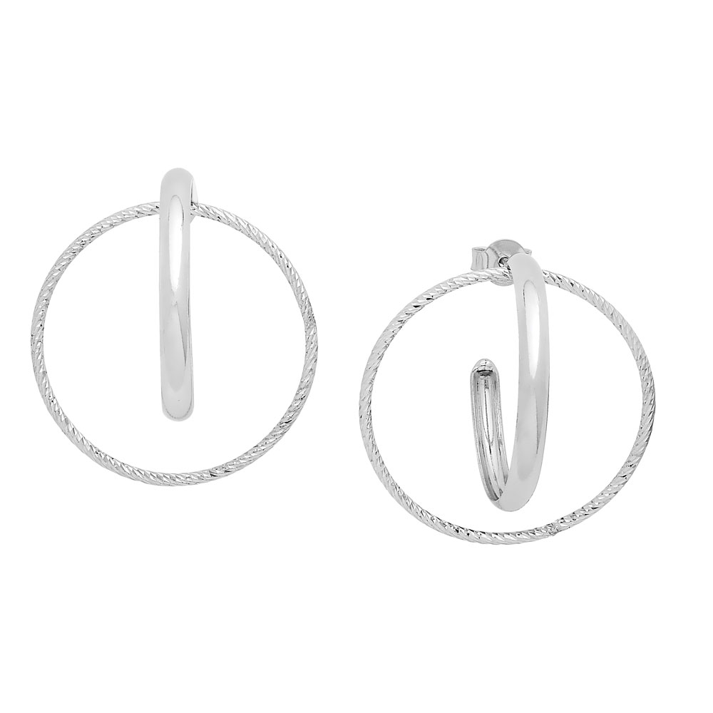 Silver Double Hoop Earring Plain-High-Polish and Diamond-Cut Design