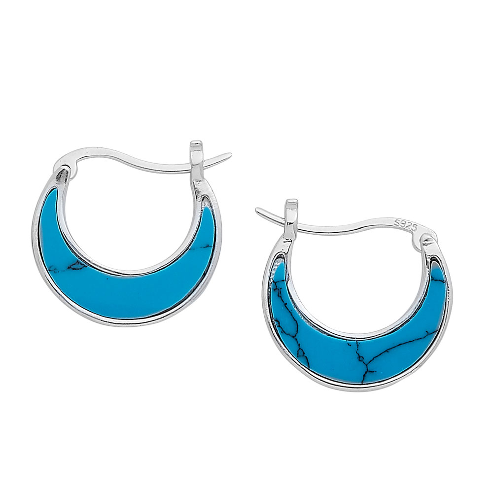 .925 Silver earrings with synthetic turquoise crescent moon design