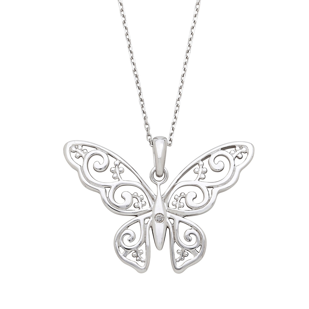 .925 Silver filigree butterfly pendant diamond accent CTW 0.01