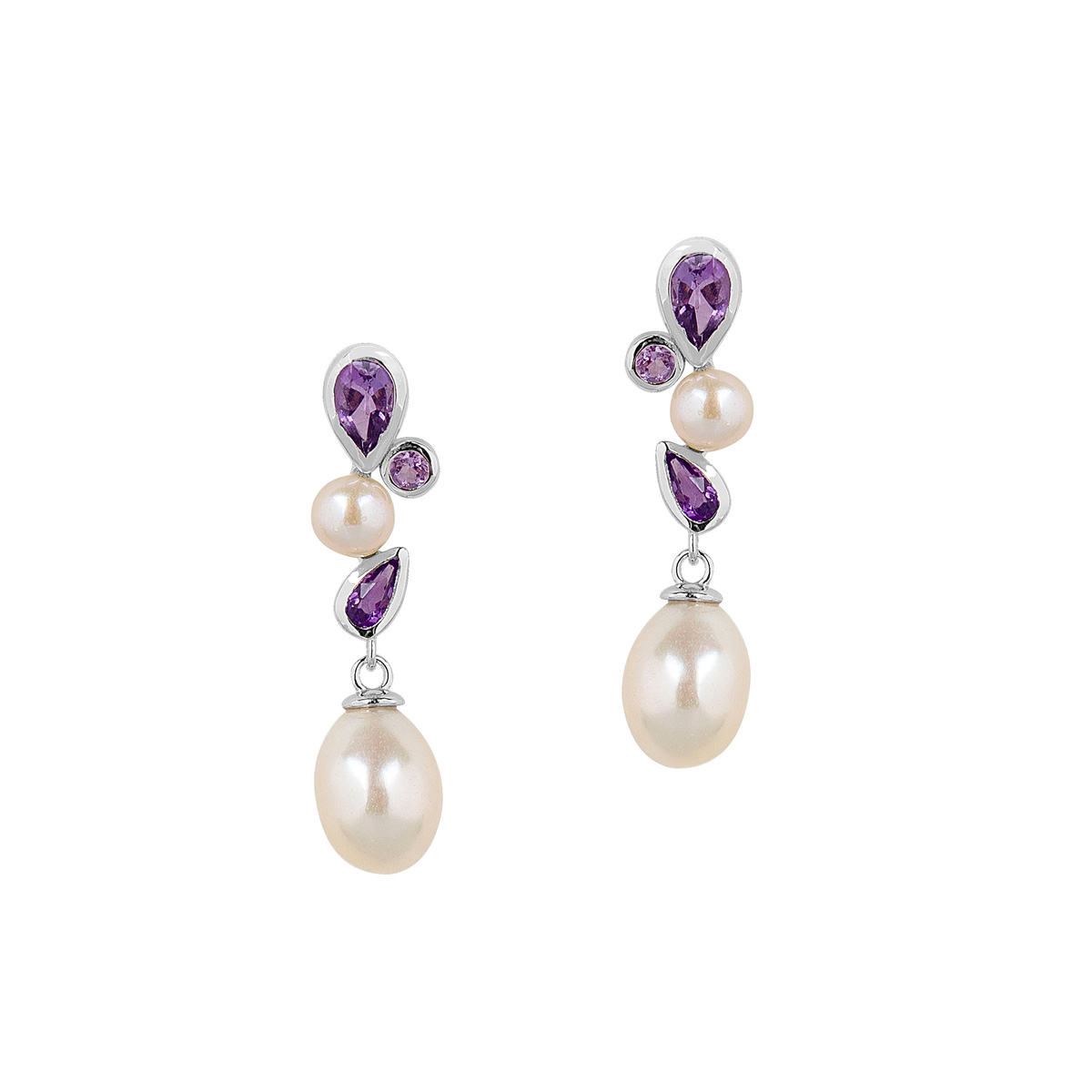 Silver Genuine Stones Earrings with African Amethyst and Fresh Water Pearls