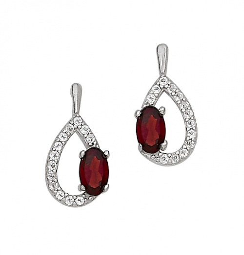 Silver White Topaz Teardrop with Garnet Pendant and Earring Set