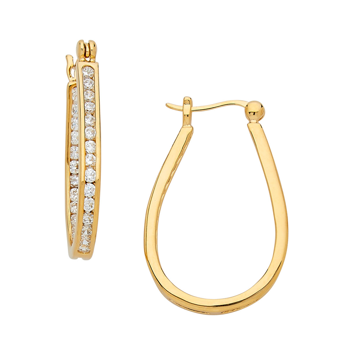 Silver Gold Tone Oval shape hoops with channel set CZ