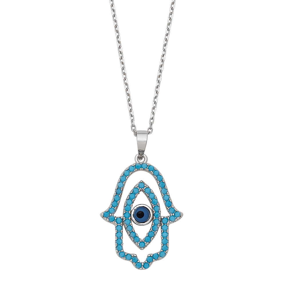 .925 Silver Hamsa Blue Nano Center and Turquoise Color Resin Pendant