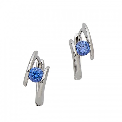 .925 Silver Huggie with Solitaire Tanzanite Color CZ