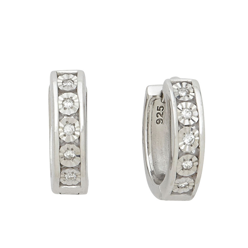 Silver Huggies Laser Cut Circles with 10 Lab-Grown Diamonds Centers 0.08 CTW