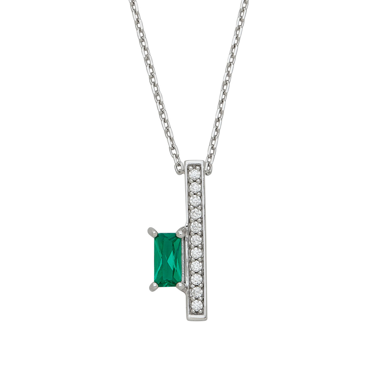 Silver Linear White Cz's Bar with Emerald Shape Green CZ Sidekick Pendant